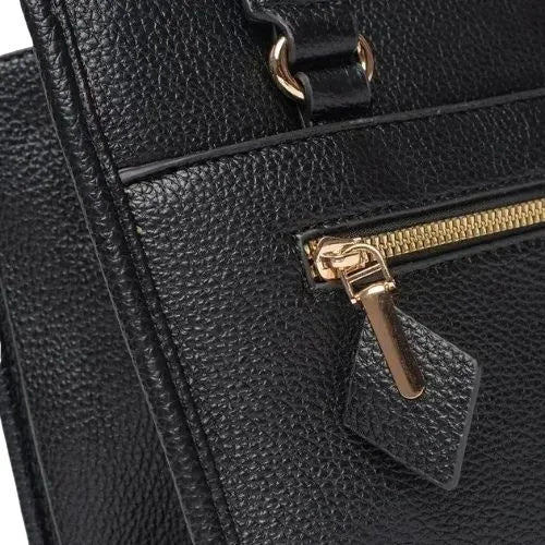 Peach And Pockets Black Satchel Handbag with Elegant Decorative Zipper